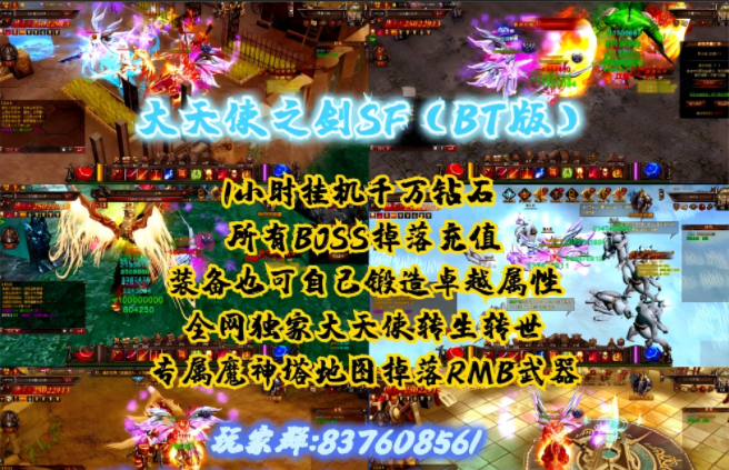 7 B7 ~! }- Q9 q: n①独家特色转生:独家转生、转世系统,转生后可获得四围属性,转世后可获得全区通用积分奖励